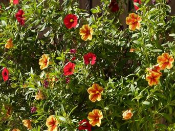 Keywords: petunia gardening flower red yellow garden orange flower red flower flowers red orange balcony