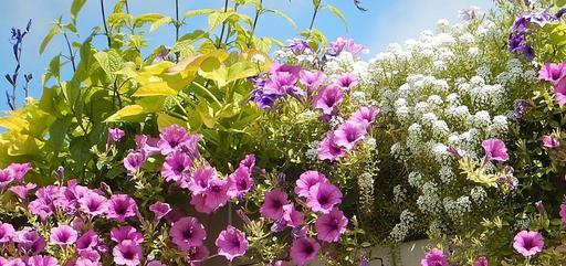 Keywords: petunias flowers summer balcony florals garden outdoors
