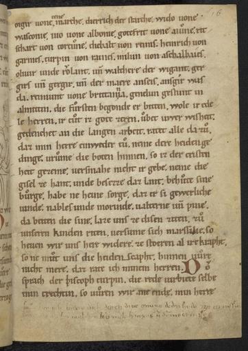 | Keywords: Pfaffe Konrad - Rolandslied - cod. pal. germ. 112 - 033.jpg Pfaffe Konrad - Rolandslied - cod pal germ 112 - jpg 032 034 Rolandslied des Pfaffen Konrad à bersetzung bzw Bearbeitung der altfranzösischen Chanson de Roland um 1100 Blatt 16r Pfaffe Konrad Rolandslied Pergament 123 Blatt 21x15 cm Regensburg/Hessen-Thüringen Ende 12 Jahrhundert Cod pal germ 112 Universitätsbibliothek Heidelberg http //diglit ub uni-heidelberg de/diglit/cpg112 century 12 Pfaffe Konrad PD-old Rolandslied Cod Pal germ 112 |