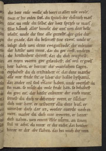 Keywords: Pfaffe Konrad - Rolandslied - cod. pal. germ. 112 - 055.jpg Pfaffe Konrad - Rolandslied - cod pal germ 112 - jpg 054 056 Rolandslied des Pfaffen Konrad à bersetzung bzw Bearbeitung der altfranzösischen Chanson de Roland um 1100 Blatt 27r Pfaffe Konrad Rolandslied Pergament 123 Blatt 21x15 cm Regensburg/Hessen-Thüringen Ende 12 Jahrhundert Cod pal germ 112 Universitätsbibliothek Heidelberg http //diglit ub uni-heidelberg de/diglit/cpg112 century 12 Pfaffe Konrad PD-old Rolandslied Cod Pal germ 112