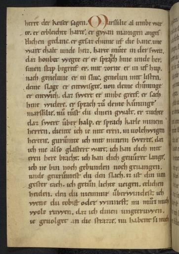 | Keywords: Pfaffe Konrad - Rolandslied - cod. pal. germ. 112 - 056.jpg Pfaffe Konrad - Rolandslied - cod pal germ 112 - jpg 055 057 Rolandslied des Pfaffen Konrad à bersetzung bzw Bearbeitung der altfranzösischen Chanson de Roland um 1100 Blatt 27v Pfaffe Konrad Rolandslied Pergament 123 Blatt 21x15 cm Regensburg/Hessen-Thüringen Ende 12 Jahrhundert Cod pal germ 112 Universitätsbibliothek Heidelberg http //diglit ub uni-heidelberg de/diglit/cpg112 century 12 Pfaffe Konrad PD-old Rolandslied Cod Pal germ 112 |