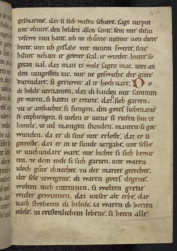 Keywords: Pfaffe Konrad - Rolandslied - cod. pal. germ. 112 - 093.jpg Pfaffe Konrad - Rolandslied - cod pal germ 112 - jpg 092 094 Rolandslied des Pfaffen Konrad à bersetzung bzw Bearbeitung der altfranzösischen Chanson de Roland um 1100 Blatt 46r Pfaffe Konrad Rolandslied Pergament 123 Blatt 21x15 cm Regensburg/Hessen-Thüringen Ende 12 Jahrhundert Cod pal germ 112 Universitätsbibliothek Heidelberg http //diglit ub uni-heidelberg de/diglit/cpg112 century 12 Pfaffe Konrad PD-old Rolandslied Cod Pal germ 112 |