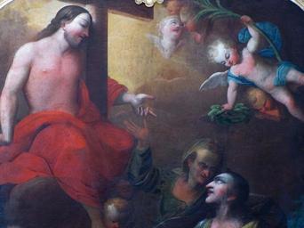 | Keywords: Pfettisheim StSymphorien 11.JPG Alsace Bas-Rhin Pfettisheim Eglise St Symphorien Tableau St Symphorien d'Autun XVIIIe-XIXe own 2012 Ralph Hammann Cc-zero Artwork / Œuvre d'art / Kunstwerk Artist Saint Symphorien en soldat est représenté aux pieds du Christ accompagné de sa mère qui l'exhorte à ne pas abjurer sa foi Dans le fond est représentée une ville Autun XVIIIe-XIXe siècles oil canvas 180 cm de large Eglise St Symphorien Pfettisheim IM67009882 object history other versions Ralph Hammann PD-old accession number Interior of Église Saint-Symphorien de Pfettisheim Church paintings in Bas-Rhin Photographs of Pfettisheim by Ralph Hammann Taken with Canon PowerShot SX20 IS 18th-century church paintings in Alsace Symphorian Neoclassical church paintings in Alsace Details of 19th-century paintings Paintings of putti in France 19th-century paintings of putti |