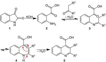 Keywords: Pfitzinger Reaction Mechanism V.1.svg en Pfitzinger_Reaction_Mechanism de Pfitzinger-Reaktion_Reaktionsmechanismus own Jü 2012-03-03 Pfitzinger reaction Cc-zero