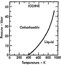 | Keywords: Phase diagram of iodine (1975).png en These 1975 phase diagrams are generally incomplete reaching at most 250 kbar 25 GPa and thus lacking many high-pressure metallic phases Taken from Phase Diagrams of the Elements David A Young UCRL-51902 Prepared for the U S Energy Research Development Administration under contract No W-7405-Eng-48 From the document DISTRIBUTION OF THIS DOCUMENT IS UNLIMITED ; printed copies were available from the w National Technical Information Service http //www osti gov/bridge/servlets/purl/4010212-0BbwUC/4010212 pdf David A Young 1975-09-11 Phase diagrams PD-USGov |