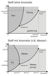 | Keywords: Phasendiagramme.svg Die Abbildung zeigt die schematischen Phasendiagramme eines Stoffes ohne Dichteanomalie oben und des Wassers de File Phasendiagramme png http //resources jwidmer de/wikipedia/Phasendiagramme cdr 2005-01-15 de Benutzer JoWi Phasendiagramme en svg translation possible JoWi Water phase diagrams |