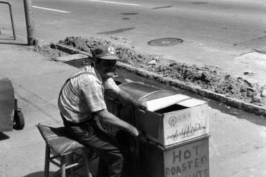 | Keywords: blackandwhite monochrome black and white The Peanut Man on Capitol Square, Raleigh, NC, 1977. This is possibly Burnace Jenks, but in our records he is unidentified. From the H. H. Brimley Photo Collection, PhC.42, State Archives of North Carolina. The Peanut Man on Capitol Square, Raleigh, NC, 1977. This is possibly Burnace Jenks, but in our records he is unidentified. From the H. H. Brimley Photo Collection, PhC.42, State Archives of North Carolina. | ||||