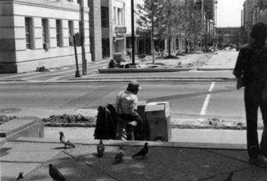 | Keywords: blackandwhite monochrome outdoor road black and white The Peanut Man on Capitol Square, Raleigh, NC, 1977. This is possibly Burnace Jenks, but in our records he is unidentified. From the H. H. Brimley Photo Collection, PhC.42, State Archives of North Carolina. The Peanut Man on Capitol Square, Raleigh, NC, 1977. This is possibly Burnace Jenks, but in our records he is unidentified. From the H. H. Brimley Photo Collection, PhC.42, State Archives of North Carolina. | ||||