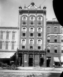 | Keywords: blackandwhite monochrome building architecture outdoor black and white Briggs Hardware building at 220 Fayetteville Street, Raleigh. Macabbee Club, Bridgers Tailor, and Dughi Ice Cream ad in lower right corner. No date; estimated 1910 (8"x10" glass plate negative). From the J. C. Knowles Photograph Collection, State Archives of North Carolina, Raleigh, NC. Briggs Hardware building at 220 Fayetteville Street, Raleigh. Macabbee Club, Bridgers Tailor, and Dughi Ice Cream ad in lower right corner. No date; estimated 1910 (8"x10" glass plate negative). From the J. C. Knowles Photograph Collection, State Archives of North Carolina, Raleigh, NC. |