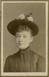 | Keywords: people monochrome photo border hat Unidentified woman, possibly Miss Mattie Pou wearing a flowered hat. Unidentified Photo Studio. No date; estimated 1890-95 (Card Photograph 1.5”x2.25”). From the R. Beverly R. Webb Photograph Collection ca. 1880-1900, PhC.19, State Archives of North Carolina, Raleigh, NC. Unidentified woman, possibly Miss Mattie Pou wearing a flowered hat. Unidentified Photo Studio. No date; estimated 1890-95 (Card Photograph 1.5”x2.25”). From the R. Beverly R. Webb Photograph Collection ca. 1880-1900, PhC.19, State Archives of North Carolina, Raleigh, NC. |