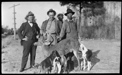 | Keywords: blackandwhite monochrome outdoor black and white Jay Dunbar and a group of deer hunters, Arbuckle's Landing, near Wallaceton, Virginia, n.d. From the Surry Parker Photograph Collection, PhC.51, State Archives of North Carolina, Raleigh, NC. Jay Dunbar and a group of deer hunters, Arbuckle's Landing, near Wallaceton, Virginia, n.d. From the Surry Parker Photograph Collection, PhC.51, State Archives of North Carolina, Raleigh, NC. | ||||