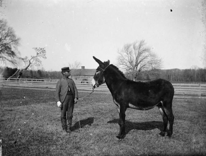 | Keywords: blackandwhite monochrome animal outdoor black and white Mr. W. E. (Ed ) Hassell , overseer on the Greenfield Farm, and mule, Greenfield Farm, Chowan County, NC, c.1905; one-story house in background (N.2000.11.103) From the Ross and Frances Inglis Photograph Collection, PhC.96, State Archives of North Carolina, Raleigh, NC. Mr. W. E. (Ed ) Hassell , overseer on the Greenfield Farm, and mule, Greenfield Farm, Chowan County, NC, c.1905; one-story house in background (N.2000.11.103) From the Ross and Frances Inglis Photograph Collection, PhC.96, State Archives of North Carolina, Raleigh, NC. |