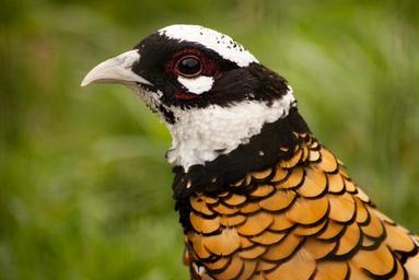 Keywords: pheasant reeves bird wildlife animal one animal game bird no people beak profile eye nature feather pattern side view gold head neck color vibrant plumage male black white bright elegant