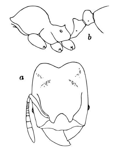 | Keywords: Pheidole.maculifrons.-.wheeler.svg Pheidole maculifrons a head of soldier; b thorax and pedicel of same in profile Wheeler 1929 Ants collected by Professor F Silvestri in Formosa the Malay Peninsula and the Philippines Bollettino del Laboratorio di Zoologia Generale e Agraria della R Scuola Superiore d'Agricultura 24 27-64 http //antbase org/ants/publications/3409/3409 pdf PDF 1929 W M Wheeler pd-old PD-old Drawings of animals by William Morton Wheeler Drawings of ants Pheidole maculifrons Pheidole heads Pheidole anatomy |