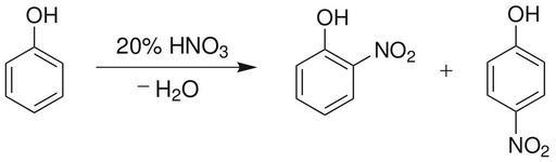 Keywords: PhenolNitration.svg en Nitration of phenol own Choij 2009-08-16 Reactions of phenol Nitration