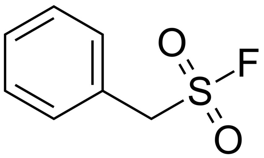 | Keywords: Phenylmethanesulfonyl fluoride 200.svg validSVG Structure of phenylmethanesulfonyl fluoride Own 2014-04-22 Emeldir <span class signature-talk >talk</span> Chemical structure verified https //upload wikimedia org/wikipedia/commons/8/8b/Phenylmethanesulfonyl_fluoride_200 svg 1S/C7H7FO2S/c8-11 9 10 6-7-4-2-1-3-5-7/h1-5H 6H2 YBYRMVIVWMBXKQ-UHFFFAOYSA-N 329-98-6 PD-chem Sulfonyl fluorides Benzyl compounds Protease inhibitors | ||||