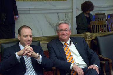 | Keywords: philadelphia city council philadelphiacitycouncil philadelphia dennis o'brien dennisobrien groupshot people indoor Photos from the Stated Meeting of Philadelphia City Council held on Thursday, December 10, 2015, the final Council meeting of this term. On the agenda, bills including: a cable franchise renewal with Comcast, two zoning bills regarding a South Philly casino/hotel, a vehicle registration fee designed to fund street calming efforts. Also, a visit from outgoing Philadelphia Mayor Michael A. Nutter, farewells to the three Council Members departing after this term: Marian Tasco (9th District), Wilson Goode, Jr. and Dennis O'Brien (At Large). Photos by Samar Jha/PHL Council Fellow. Photos from the Stated Meeting of Philadelphia City Council held on Thursday, December 10, 2015, the final Council meeting of this term. On the agenda, bills including: a cable franchise renewal with Comcast, two zoning bills regarding a South Philly casino/hotel, a vehicle registration fee designed to fund street calming efforts. Also, a visit from outgoing Philadelphia Mayor Michael A. Nutter, farewells to the three Council Members departing after this term: Marian Tasco (9th District), Wilson Goode, Jr. and Dennis O'Brien (At Large). Photos by Samar Jha/PHL Council Fellow. |