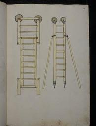 Keywords: Philipp Mönch - Kriegsbuch - cod. pal. germ. 126 - 037.jpg Philipp Mönch - Kriegsbuch - cod pal germ 126 - jpg 036 038 de ;Kriegsbuch Dys büch der stryt vnd bůchßen Ward gemacht in der Vaßnacht als man zalt von cristus geburt 1496 11 -16 Februar 1496 jar dar uff soellen die buchßenmeister haben groß acht fer war Belagerungsgerät Sturmleitern Philipp Mönch Kriegsbuch Papier 44 Bl 41x28 5 cm Heidelberg 1496 Cod Pal germ 126 Universtiätsbibliothek Heidelberg http //digi ub uni-heidelberg de/diglit/cpg126 1496 Philipp Mönch PD-old-100 Kriegsbuch Cod Pal germ 126 Siege equipment