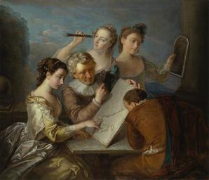 | Keywords: Philippe Mercier - The Sense of Sight - Google Art Project.jpg No inscription Inscription _Signed_and_Dated Not signed not dated Bay13 401 Oil on canvas telescope magnifying glass senses Rococco style Italianate girls man women column architectural element mirror costume conversation piece genre subject landscape globe cartographic sphere map sight special url_id QAF8Pa1BORfMuQ PD-old-100-1923 1760 The Five Senses by Philippe Mercier Google Art Project works by Philippe Mercier Allegories of sight |