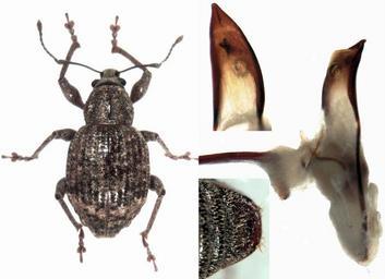 Keywords: Phlyctinus callosus male.jpg en adult male Phlyctinus callosus with dissected aedeagus own photo taken by me S E Thorpe 2010-04-09 NEW ZEALAND AK Auckland City Albert Park on low plants at night 8 Apr 2010 S E Thorpe Entiminae