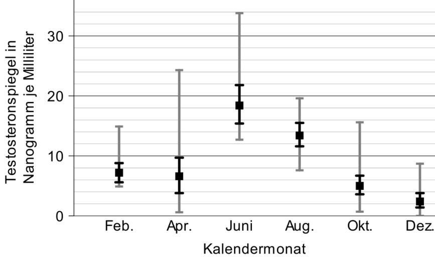 | Keywords: Phodopus roborovskii DE Testosteronspiegel.svg Jahreszeitliche Entwicklung des Testosteronspiegels im Blutplasma männlicher Roborowski-Zwerghamster male testosterone plasma level selbst erstellt mit Gnumeric 1 7 own work / nach Natalja Jurjewna Feoktistowa Ilja Grigorjewitsch Meschtscherski Seasonal Changes in Desert Hamster Phodopus roborovskii Breeding Activity In Acta Zoologica Sinica Bd 51 Nr 1 2005 ISSN 0001-7051 S 1 “6 http //www actazool org/paperdetail asp id 1451 volume 51 number 1 bgpage 1 endpage 6 year 2005 month 2 Abstract und Volltext ; Abb 4 S 4 2008-02-01 Torben Schink wikitable style text-align center; - Nanogramm je Millimeter Feb Apr Juni Aug Okt Dez - text-align left; Mittelwert 7 2 6 6 18 4 13 4 5 0 2 4 - text-align left; Standardfehler 5 6 “8 8 3 8 “9 7 15 4 “21 8 11 6 “15 5 3 6 “6 7 1 4 “3 8 - text-align left; Wertebereich 4 9 “14 9 0 6 “24 3 12 7 “33 8 7 6 “19 6 0 7 “15 6 k A “8 7 Phodopus roborovskii |
