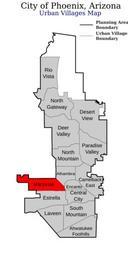 | Keywords: Phoenix Urban Villages Maryvale highlighted.svg This map shows the Urban Villages in Phoenix Arizona Maryvale is highlighted in red I created it in Inkscape using data from the City of Phoenix Website specifically the http //phoenix gov/PLANNING/vplanners pdf Urban Village Planners Map My own work based on government information Though I strove to be as accurate in the detail as possible the information isn't one hundred percent accurate 2008-04-15 Ixnayonthetimmay Public Domain See Category Maps of the Urban Villages of Phoenix Arizona for other versions of this image Maps of Phoenix Arizona Maps of the Urban Villages of Phoenix Arizona Created with Inkscape |