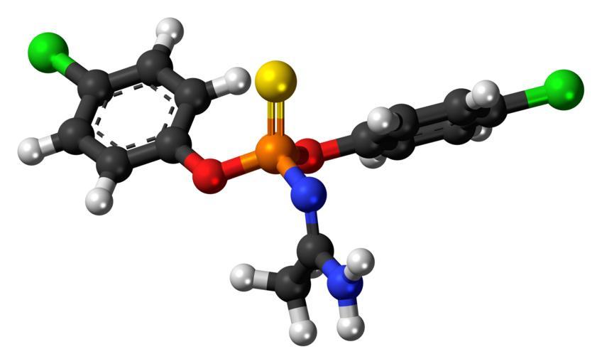 | Keywords: Phosacetim-3D-balls.png Ball-and-stick model of the phosacetim molecule a rat poison Colour code 505050 Carbon C black<br> F0F0F0 Hydrogen H white<br> F51E1E Oxygen O red<br> 3C50FA Nitrogen N blue<br> FA8C00 Phosphorus P orange<br> FAEB00 Sulfur S yellow<br> 14F014 Chlorine Cl green<br> 2011-06-13 own DS Visualizer Jynto talk Space-filling version cc-zero Aliphatic amide organothiophosphate insecticides Amidines Monochlorobenzenes Images by Jynto | ||||