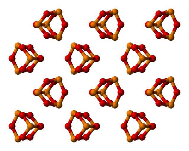 | Keywords: Phosphorus-trioxide-xtal-3D-balls-A.png Ball-and-stick model of the packing of P<sub>4</sub>O<sub>6</sub> molecules in the crystal structure X-ray crystallographic data from cite journal Inorg Chem 23 26 1984 4486 “4488 10 1021/ic00194a017 Structural investigations on solid tetraphosphorus hexaoxide M Jansen M Moebs Model constructed in http //www crystalmaker com/ CrystalMaker 8 1 Image generated in http //accelrys com/products/discovery-studio/visualization/discovery-studio-visualizer html Accelrys DS Visualizer Own 2009-01-15 Ben Mills Benjah-bmm27 Images by Ben Mills Phosphorus trioxide Crystal structures of oxides |