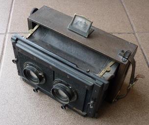 Keywords: Photo camera (general view) Curt Bentzin Görlitz.JPG pl Aparat fotograficzny stereoskopowy na płyty szklane firmy Curt Bentzin Görlitz own Julo 2010-07-20 Julo Stereo cameras Curt Bentzin