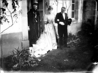 | Keywords: bibliothèque de toulouse bibliothèquedetoulouse blackandwhite monochrome black and white Fonds Trutat - Photographie ancienne Cote : TRU C 2497 Localisation : Fonds ancien (S 30) Original non communicable Titre : Photo de la mariée aves ses parents, mariage Regnault, Foix Auteur : Trutat, Eugène Rôle de l’auteur : Photographe Lieu de création : Foix (Ariège) Date de création : 1859-1910 [entre] Mesures : : 9 x 12 cm Observations : Note manuscrite de Trutat : " Foix : mariage Regnault ". Une photocopie du tirage papier de Dieuzaide. Mot(s)-clé(s) : -- Portrait -- En pied -- Famille -- Femme -- Robe -- Mariage -- Voile -- Homme -- Costume masculin -- Costume féminin -- Haut-de-forme -- Chapeau -- Voilette -- Gant -- Seuil -- Maison -- Relation bienveillante -- Regnault, Félix -- Regnault, Madame -- Foix (Ariège) -- Foix (Ariège; canton) -- Midi-Pyrénées (France) -- Ariège (Midi-Pyrénées) -- 19e siècle, 2e moitié -- 20e siècle, 1e quart Médium : Photographies -- Négatifs sur plaque de verre -- Noir et blanc -- Portraits de groupe numerique.bibliotheque.toulouse.fr/cgi-bin/library?c=phot... Bibliothèque de Toulouse. Domaine public Fonds Trutat - Photographie ancienne Cote : TRU C 2497 Localisation : Fonds ancien (S 30) Original non communicable Titre : Photo de la mariée aves ses parents, mariage Regnault, Foix Auteur : Trutat, Eugène Rôle de l’auteur : Photographe Lieu de création : Foix (Ariège) Date de création : 1859-1910 [entre] Mesures : : 9 x 12 cm Observations : Note manuscrite de Trutat : " Foix : mariage Regnault ". Une photocopie du tirage papier de Dieuzaide. Mot(s)-clé(s) : -- Portrait -- En pied -- Famille -- Femme -- Robe -- Mariage -- Voile -- Homme -- Costume masculin -- Costume féminin -- Haut-de-forme -- Chapeau -- Voilette -- Gant -- Seuil -- Maison -- Relation bienveillante -- Regnault, Félix -- Regnault, Madame -- Foix (Ariège) -- Foix (Ariège; canton) -- Midi-Pyrénées (France) -- Ariège (Midi-Pyrénées) -- 19e siècle, 2e moitié -- 20e siècle, 1e quart Médium : Photographies -- Négatifs sur plaque de verre -- Noir et blanc -- Portraits de groupe numerique.bibliotheque.toulouse.fr/cgi-bin/library?c=phot... Bibliothèque de Toulouse. Domaine public |