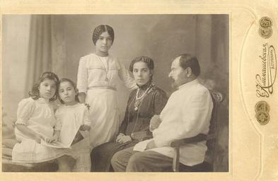 | Keywords: Photo of Narimanov with his nieces in passe-partout.jpg en This photo of Nariman Narimanov and his nieces was taken in Astrakhan by Klimashevskaya Photoshop in 1913 The same year it was gifted to Narimanov's friend Hussein Hayatov and hold for about 100 years by Hayatov's family In 2011 the photo was donated to Narimanov Museum in Baku ru Эта фотог афия а имана а иманова с племянницами была сделана в фотоателье Климашевской в Аст ахани в 1913 году В том же году по т ет был пода ен а имановым д угу Гусейну Хаятову в семье кото ого он х анился на п отяжении почти ста лет В 2011 году о игинал был пе едан в да узею а иманова в Баку az Bu Nəriman Nərimanov qardaşı qızları və bacı qizları ilə fotoşəkil 1913 ildə Həştərxanda Klimaşevskayanın atelyesində çəkilmişdir Həmən ildə Nərimanovun dostu Hüseyn Həyatova hədiyyə olundu və Həyatovun ailəsində yüz ilə yaxın saxlanılırdı 2011 ildə şəkilin orijinalı Bakı Nərimanov xatirə muzeyinə hədiyyə edilmişdir 1913 Narimanov Museum Klimashevskaya Photoshop in Astrakhan PD-old Nariman Narimanov |