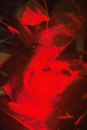 | Keywords: Photodynamic therapy (2).jpg Close up of surgeons' hands in an operating room with a beam of light traveling along fiber optics for photodynamic therapy Its source is a laser beam which is split at two different stages to create the proper therapeutic wavelength A patient would be given a photo sensitive drug photofrin containing cancer killing substances which are absorbed by cancer cells During the surgery the light beam is positioned at the tumor site which then activates the drug that kills the cancer cells thus photodynamic therapy PDT Topics/Categories Treatment Other Interventions Type Color Photo Source National Cancer Institute John Crawford Photographer 2340 1988-04 Reuse Restrictions None - This image is in the public domain and can be freely reused Please credit the source and/or author listed above John Crawford Photographer PD-USGov-HHS-NIH Images uploaded by Fæ Laser therapy Cancer treatments Media from National Cancer Institute Visuals Online |