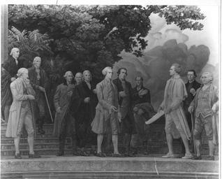 | Keywords: nara:arcid=7820678 u.s. national archives usnationalarchives national archives building nationalarchivesbuilding blackandwhite monochrome outdoor black and white Original Caption: Photograph of the Center Section of the Mural, The Declaration of Independence, by Barry Faulkner, 10/27/1936 U.S. National Archives’ Local Identifier: 64-NA-115 Scope and Content Note:In this detail of the Barry Faulkner mural, The Declaration of Independence, the figures pictured from left to right are: George Wythe, John Dickinson, William Floyd, Abraham Clark, William Ellery, John Witherspoon, John Hancock, Benjamin Harrison, Samuel Huntington, Thomas Jefferson, Roger Sherman, and John Adams. From: Series : Historic Photograph File of National Archives Events and Personnel, compiled 1935 - 1975, documenting the period ca. 1928 - 1975 Created By: General Services Administration. National Archives and Records Service. Office of Educational Programs. Education Division. (? - 04/01/1985) Production Date: 10/27/1936 Persistent URL: research.archives.gov/description/7820678 Repository: National Archives at College Park - Still Pictures (RD-DC-S), National Archives at College Park For information about ordering reproductions of photographs held by the Still Picture Unit, visit: www.archives.gov/research/order/still-pictures.html Reproductions may be ordered via an independent vendor. NARA maintains a list of vendors at www.archives.gov/research/order/vendors-photos-maps-dc.html Original Caption: Photograph of the Center Section of the Mural, The Declaration of Independence, by Barry Faulkner, 10/27/1936 U.S. National Archives’ Local Identifier: 64-NA-115 Scope and Content Note:In this detail of the Barry Faulkner mural, The Declaration of Independence, the figures pictured from left to right are: George Wythe, John Dickinson, William Floyd, Abraham Clark, William Ellery, John Witherspoon, John Hancock, Benjamin Harrison, Samuel Huntington, Thomas Jefferson, Roger Sherman, and John Adams. From: Series : Historic Photograph File of National Archives Events and Personnel, compiled 1935 - 1975, documenting the period ca. 1928 - 1975 Created By: General Services Administration. National Archives and Records Service. Office of Educational Programs. Education Division. (? - 04/01/1985) Production Date: 10/27/1936 Persistent URL: research.archives.gov/description/7820678 Repository: National Archives at College Park - Still Pictures (RD-DC-S), National Archives at College Park For information about ordering reproductions of photographs held by the Still Picture Unit, visit: www.archives.gov/research/order/still-pictures.html Reproductions may be ordered via an independent vendor. NARA maintains a list of vendors at www.archives.gov/research/order/vendors-photos-maps-dc.html |