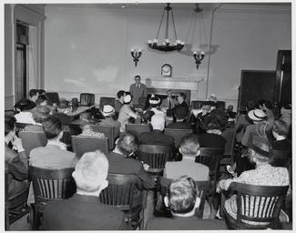 | Keywords: nara 75th anniversary nara75thanniversary united states national archives personnel unitedstatesnationalarchivespersonnel nara:arcid=3493215 u.s. national archives usnationalarchives b/w bw research geneology geneological research geneologicalresearch indoor room blackandwhite black and white Original Caption: Dr. Grover and classes in Archives Administration and Genealogical Research in Room 105, June 1950. U.S. National Archives’ Local Identifier: 64-NA-1-8 Persistent URL: catalog.archives.gov/id/3493215 Repository: Still Picture Records Section, Special Media Archives Services Division (NWCS-S), National Archives at College Park, 8601 Adelphi Road, College Park, MD, 20740-6001. For information about ordering reproductions of photographs held by the Still Picture Unit, visit: www.archives.gov/research/order/still-pictures.html Reproductions may be ordered via an independent vendor. NARA maintains a list of vendors at www.archives.gov/research/order/vendors-photos-maps-dc.html Access Restrictions: Unrestricted Use Restrictions: Unrestricted Original Caption: Dr. Grover and classes in Archives Administration and Genealogical Research in Room 105, June 1950. U.S. National Archives’ Local Identifier: 64-NA-1-8 Persistent URL: catalog.archives.gov/id/3493215 Repository: Still Picture Records Section, Special Media Archives Services Division (NWCS-S), National Archives at College Park, 8601 Adelphi Road, College Park, MD, 20740-6001. For information about ordering reproductions of photographs held by the Still Picture Unit, visit: www.archives.gov/research/order/still-pictures.html Reproductions may be ordered via an independent vendor. NARA maintains a list of vendors at www.archives.gov/research/order/vendors-photos-maps-dc.html Access Restrictions: Unrestricted Use Restrictions: Unrestricted |