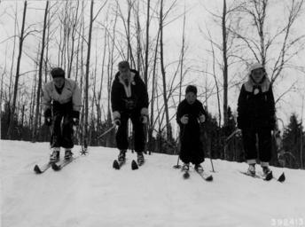 | Keywords: Photograph of Four Skiers - NARA - 2128564.jpg Scope and content Original caption four skiers left to right Bob Halvorsen Weldon Burkle Donald Maslin and Marge Burkle at the top of the practice slope ready to start down Anvil Lake Ski Trail General notes 2128564 Local identifier 392413 Department of Agriculture Forest Service Region 9 Eastern Region 1965 - Most Recent <br /> Department of Agriculture Division of Forestry 1881 - 07/01/1901 Predecessor NARA-Place Chequamegon-Nicolet National Forest Wis 4509449 46 29856 -89 9231 <br /> NARA's Great Lakes Region Chicago NRDA 7358 South Pulaski Road Chicago IL 60629-5898 02/1940 Record group Record Group 95 Records of the Forest Service 1870 - 2008 Record group ARC 424 Historic Photographs compiled ca 1880 - ca 1970 Series ARC 1812856 File unit File unit ARC Variant control numbers Agency-Assigned Identifier 392413 Other versions <gallery> File Photograph_of_Four_Skiers_-_NARA_-_2128564 tif tif File Photograph_of_Four_Skiers_-_NARA_-_2128564 jpg jpg </gallery> NARA-cooperation PD-USGov USDA NARA images from the Dept of Forestry Skiing in the United States |