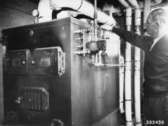 | Keywords: Photograph of the Heating Plant - NARA - 2128577.jpg Scope and content Original caption View of the heating plant which furnishes heat and steam to operate the extractory kilns L Kirkpatrick is shown at the right adjusting the control valves for pipes leading from the furnace to the kilns General notes 2128577 Local identifier 392439 Department of Agriculture Forest Service Region 9 Eastern Region 1965 - Most Recent <br /> Department of Agriculture Division of Forestry 1881 - 07/01/1901 Predecessor NARA-Place Chippewa National Forest Minn 4509445 <br /> NARA's Great Lakes Region Chicago NRDA 7358 South Pulaski Road Chicago IL 60629-5898 02/1940 Record group Record Group 95 Records of the Forest Service 1870 - 2008 Record group ARC 424 Historic Photographs compiled ca 1880 - ca 1970 Series ARC 1812856 File unit File unit ARC Variant control numbers Agency-Assigned Identifier 392439 Other versions <gallery> File Photograph_of_the_Heating_Plant_-_NARA_-_2128577 tif tif File Photograph_of_the_Heating_Plant_-_NARA_-_2128577 jpg jpg </gallery> NARA-cooperation PD-USGov USDA NARA images from the Dept of Forestry |