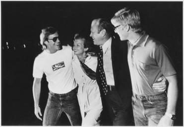| Keywords: Photograph of Jack and Steve Ford Meeting Their Parents, President Gerald Ford and First Lady Betty Ford on the South... - NARA - 186818.tif This photograph depicts President and Mrs Ford walking arm in arm with Jack and Steve flanking them at 10 50 pm<ref> Citation White House September 5 1975 Daily Diary of President Gerald R Ford September 45 1975 President's Daily Diary Collection Box 77 at the Gerald R Ford Presidential Library 12 http //www fordlibrarymuseum gov/library/document/0036/pdd750905 pdf November 26 2012 </ref> on Friday September 5 1975 The President had just returned from Sacramento California where Lynette Squeaky Fromme had made an attempt on his life General notes 186818 Local identifier GRF-WHPO-A6311 28 President 1974-1977 Ford White House Photographic Office 1974 - 1977 Creator David Hume Kennerly <br> Kennerly David Hume 1947- Photographer 1312484 Institution Gerald R Ford Presidential Library Gerald R Ford Library NLGRF 1000 Beal Avenue Ann Arbor MI 48109-2114 1975-09-05 Record group Collection GRF-WHPO White House Photographic Office Collection Ford Administration 12/06/1973 - 01/20/1977 Record group ARC 1136 Gerald R Ford White House Photographs compiled 08/09/1974 - 01/20/1977 Series ARC 1756311 File unit File unit ARC Variant control numbers NAIL Control Number NLF-WHPO-A-A6311 28 yes Other versions References Reflist Gerald R Ford Presidential Library and Museum-cooperation PD-USGov 1975 in Washington D C Betty and Gerald Ford Ford assassination attempt in Sacramento Photographs at the Gerald R Ford Presidential Library and Museum Jack Ford Steven Ford Gerald Ford in 1975 Photographs by David Hume Kennerly from 1975 Gerald R Ford Presidential Library and Museum series Gerald R Ford White House Photographs compiled 08/09/1974 - 01/20/1977 |