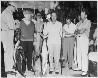 | Keywords: Photograph of the Naval Aide to the President, Captain Robert Dennison, posing with a 29 pound king mackerel which he... - NARA - 200499.tif Scope and content General notes 200499 Local identifier National Archives and Records Administration Office of Presidential Libraries Harry S Truman Library 04/01/1985 - Harry S Truman Library NLHST 500 West U S Highway 24 Independence MO 64050-1798 1948-03-01 Record group Collection HST-AVC Audiovisual Collection 1957 - 2006 Record group ARC 1207 Photographs Relating to the Administration Family and Personal Life of Harry S Truman compiled 1957 - 2004 documenting the period 1849 - 2004 Series ARC 198606 File unit File unit ARC Variant control numbers NAIL Control Number NLT-AVC-PHT- 77 1967 yes Other versions <gallery> File Photograph_of_the_Naval_Aide_to_the_President _Captain_Robert_Dennison _posing_with_a_29_pound_king_mackerel_which_he _-_NARA_-_200499 tif tif File Photograph_of_the_Naval_Aide_to_the_President _Captain_Robert_Dennison _posing_with_a_29_pound_king_mackerel_which_he _-_NARA_-_200499 jpg jpg </gallery> NARA-cooperation PD-USGov Robert Dennison US Navy officer NARA TIF images with categorized JPGs |