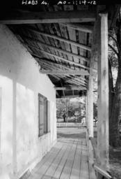 | Keywords: Photograph of the Porch of the Bequet-Ribault House in Ste Genevieve MO.png This photogrpah showns the <i>gallerie</i> along the west side Note the space between the outer wall and the roof of the <i>gallerie</i> The Bequet-Ribault House was built c 1793 near Ste Geneviève Missouri It is one of three <i>poteaux-en-terre</i> buildings that survive The others are the Amoureaux House and the Vital St Gemme Beauvais House I 20 S Main Street Historic American Engineering Record National Park Service; Record MO-1114 April/May 1986 Jack E Boucher Cross Reference thumb left 350px A view of a corner of one of the <i>gallerie</i> thumb left 350px A view of the <i>gallerie</i> structure from inside the attic MO-1114 Maison Bequet-Ribault Porches in the United States Historic American Buildings Survey of Missouri Black and white photographs of Missouri |