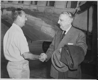 | Keywords: Photograph of Rear Admiral Robert Dennison, Naval Aide to the President, greeting Chief Justice Fred Vinson upon his... - NARA - 199040.tif Scope and content General notes 199040 Local identifier National Archives and Records Administration Office of Presidential Libraries Harry S Truman Library 04/01/1985 - Harry S Truman Library NLHST 500 West U S Highway 24 Independence MO 64050-1798 1950-03-18 Record group Collection HST-AVC Audiovisual Collection 1957 - 2006 Record group ARC 1207 Photographs Relating to the Administration Family and Personal Life of Harry S Truman compiled 1957 - 2004 documenting the period 1849 - 2004 Series ARC 198606 File unit File unit ARC Variant control numbers NAIL Control Number NLT-AVC-PHT- 72 4689 yes Other versions <gallery> File Photograph_of_Rear_Admiral_Robert_Dennison _Naval_Aide_to_the_President _greeting_Chief_Justice_Fred_Vinson_upon_his _-_NARA_-_199040 tif tif File Photograph_of_Rear_Admiral_Robert_Dennison _Naval_Aide_to_the_President _greeting_Chief_Justice_Fred_Vinson_upon_his _-_NARA_-_199040 jpg jpg </gallery> NARA-cooperation PD-USGov Robert Dennison US Navy officer Category 1950 in Florida Robert Dennison US Navy officer Fred M Vinson NARA TIF images with categorized JPGs Politicians shaking hands with military people |