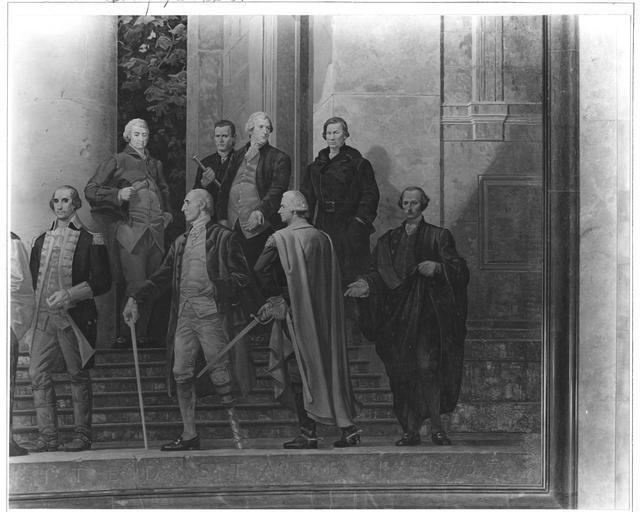 | Keywords: nara:arcid=7820684 u.s. national archives usnationalarchives national archives building nationalarchivesbuilding blackandwhite monochrome surreal black and white Original Caption: Photograph of the Right Section of the Mural, The Constitution, by Barry Faulkner, 10/27/1936 U.S. National Archives’ Local Identifier: 64-NA-117 Scope and Content Note:In this detail of the Barry Faulkner mural, The Constitution, the figures pictured from left to right in the front row are: Charles Cotesworth Pinckney, Gouverneur Morris, Alexander Hamilton, and George Read. Pictured left to right back row: Luther Martin, Roger Sherman, Gunning Bedford, Jr., and Abraham Baldwin. From: Series : Historic Photograph File of National Archives Events and Personnel, compiled 1935 - 1975, documenting the period ca. 1928 - 1975 Created By: General Services Administration. National Archives and Records Service. Office of Educational Programs. Education Division. (? - 04/01/1985) Production Date: 10/27/1936 Persistent URL: research.archives.gov/description/7820684 Repository: National Archives at College Park - Still Pictures (RD-DC-S), National Archives at College Park For information about ordering reproductions of photographs held by the Still Picture Unit, visit: www.archives.gov/research/order/still-pictures.html Reproductions may be ordered via an independent vendor. NARA maintains a list of vendors at www.archives.gov/research/order/vendors-photos-maps-dc.html Original Caption: Photograph of the Right Section of the Mural, The Constitution, by Barry Faulkner, 10/27/1936 U.S. National Archives’ Local Identifier: 64-NA-117 Scope and Content Note:In this detail of the Barry Faulkner mural, The Constitution, the figures pictured from left to right in the front row are: Charles Cotesworth Pinckney, Gouverneur Morris, Alexander Hamilton, and George Read. Pictured left to right back row: Luther Martin, Roger Sherman, Gunning Bedford, Jr., and Abraham Baldwin. From: Series : Historic Photograph File of National Archives Events and Personnel, compiled 1935 - 1975, documenting the period ca. 1928 - 1975 Created By: General Services Administration. National Archives and Records Service. Office of Educational Programs. Education Division. (? - 04/01/1985) Production Date: 10/27/1936 Persistent URL: research.archives.gov/description/7820684 Repository: National Archives at College Park - Still Pictures (RD-DC-S), National Archives at College Park For information about ordering reproductions of photographs held by the Still Picture Unit, visit: www.archives.gov/research/order/still-pictures.html Reproductions may be ordered via an independent vendor. NARA maintains a list of vendors at www.archives.gov/research/order/vendors-photos-maps-dc.html |