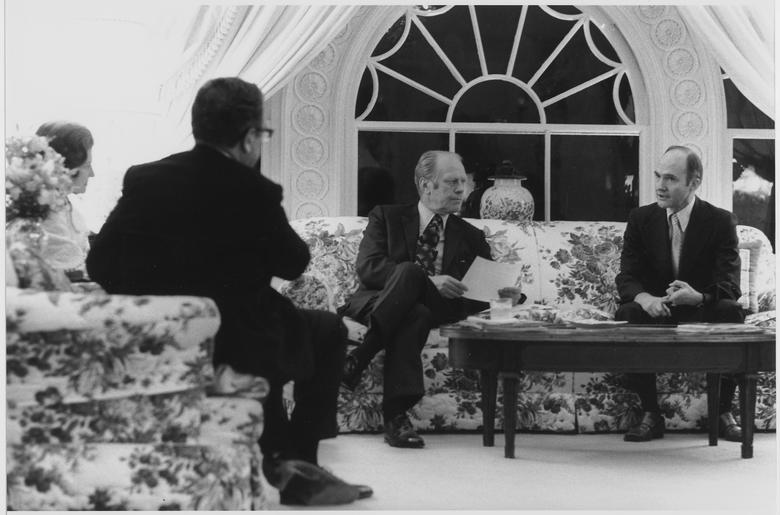 | Keywords: Photograph of Secretary of State Henry A. Kissinger and National Security Adviser Brent Scowcroft Visiting the West... - NARA - 186799.tif This photograph was taken in the Second Floor Residence at the White House General notes 186799 Local identifier GRF-WHPO-A4233 7A President 1974-1977 Ford White House Photographic Office 1974 - 1977 Kennerly David Hume 1947- Photographer 1312484 <br /> Thành Pho Ho Chí Minh Thanh Pho-Ho Chi Minh Vietnam Asia inhabited place 4178721 10 75 106 667 <br /> Institution Gerald R Ford Presidential Library Gerald R Ford Library NLGRF 1000 Beal Avenue Ann Arbor MI 48109-2114 1975-04-28 Record group Collection GRF-WHPO White House Photographic Office Collection Ford Administration 12/06/1973 - 01/20/1977 Record group ARC 1136 Gerald R Ford White House Photographs compiled 08/09/1974 - 01/20/1977 Series ARC 1756311 File unit File unit ARC Variant control numbers NAIL Control Number NLF-WHPO-A-A4233 7A yes Other versions Gerald R Ford Presidential Library and Museum-cooperation PD-USGov Henry Kissinger Betty and Gerald Ford Brent Scowcroft West Sitting Hall Gerald R Ford Presidential Library and Museum series Gerald R Ford White House Photographs compiled 08/09/1974 - 01/20/1977 |