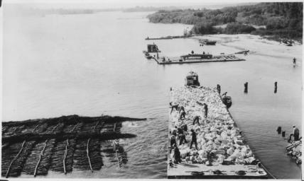 | Keywords: Photograph with caption "Rock and brush protection mattress, L-D No. 8...Start of sinking 50 ft. mat below tainter... - NARA - 282413.tif Scope and content General notes 282413 Local identifier War Department Office of the Chief of Engineers St Paul District 1866 - 09/18/1947 NARA's Great Lakes Region Chicago NRDA 7358 South Pulaski Road Chicago IL 60629-5898 1940-09-14 Record group Record Group 77 Records of the Office of the Chief of Engineers 1789 - 1999 Record group ARC 406 Operations and Maintenance Files Relating to Lock and Dam Numbers 3-10 of the Mississippi River Nine Foot Channel Project compiled 1931 - 1943 Series ARC 282367 File unit 813a 1 Miscellaneous Correspondence ca 1931 - ca 1943 File unit ARC 282409 Variant control numbers NAIL Control Number NRDC-77-SLD3-813A 1 -GOF4 yes Other versions <gallery> File Photograph_with_caption_ Rock_and_brush_protection_mattress _L-D_No _8 Start_of_sinking_50_ft _mat_below_tainter _-_NARA_-_282413 tif tif File Photograph_with_caption_ Rock_and_brush_protection_mattress _L-D_No _8 Start_of_sinking_50_ft _mat_below_tainter _-_NARA_-_282413 jpg jpg </gallery> NARA-cooperation PD-USGov NARA TIF images with categorized JPGs |