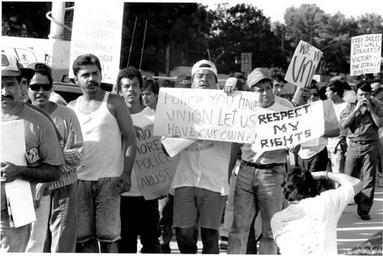 | Keywords: Photograph of workers protesting the jailing of fellow drywall strikers in 1992.jpg Uploaded with en wp UW marker 2013 06 09 On June 1 1992 hundreds of drywall workers walked off construction sites demanding a union and higher wages Five weeks into the walkout 149 of them were arrested after sheriff's deputies said the men stormed a construction site in Mission Viejo one of the largest mass arrests in Orange County Nearly 90 of those arrested were in danger of being deported as undocumented immigrants Acting in solidarity the men refused a plea bargain and asked for trials Read an L A Times article on the strike Drywall Strike Centers on Issue of Equitable Pay http //www socallib org/pages/drywallprotest Slobodan Dimitrov http //www socallib org/pages/drywallprotest ;Other information You are free to use the images documents and audio files you find on this website for personal use or in classroom or community settings We appreciate hearing from you about how you are using the materials If you plan to publish any of the materials for example in a print publication or in an exhibit or radio/tv show please contact us to find out about reproduction and use fees using the contact information provided above Please note that when the Southern California Library gives permission for publication it is as the owner of the physical item and is not intended to include or imply permission of the copyright holder which must also be obtained Slobodan Dimitrov Uncategorized 2013 June 9 |
