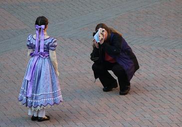Keywords: photographer pose posing girl costume camera fashion photography young female photo picture equipment