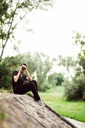 Keywords: photographer sitting young camera professional technology photography hobby man guy photographic outdoor nature graffiti suburb