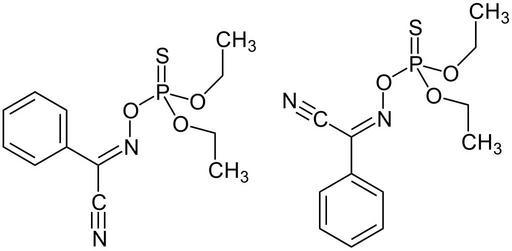 Keywords: Phoxim Structural FormulaeV.1.svg en E Z -Phoxim_Structural_Formulae de E Z -Phoxim_Strukturformel own Jü 2011-10-26 Cc-zero Organothiophosphate insecticides Nitriles