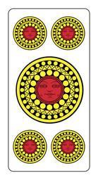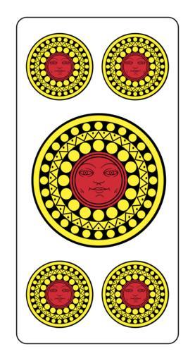 | Keywords: Piacentine-D5.svg 5 di denari delle carte da gioco piacentine Modiano Created with Inkscape self-made based on Image Piacentine deck jpg F l a n k e r PD-old Piacenza deck SVG playing cards Piacentine denari 05 Individual playing cards Piacentine denari 05 5 of Coins |