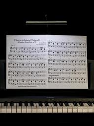 Keywords: piano lesson music keyboard piano pianist practice light darkness music stand music score sheet music dark