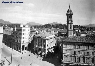 | Keywords: varese piazza monte grappa piazzamontegrappa outdoor monochrome architecture Immagine ripresa da palazzo Castiglioni con piazza Monte Grappa ancora in piena costruzione. A sinistra palazzo Verga (ing. Mario Cantù) e via Verbano (ora Marcobi) al centro corso Vittorio Emanuele II (ora Matteotti) con palazzo Mascardi/Pini ('ing. Camillo Lucchina, 1929) a destra corso Roma (ora Moro) con casa Romanò, ben visibile perchè priva dell'edificio prospicente, già abbattuto per fare spazio al palazzo dell'INPS. In piazza San Vittore si vedono le vaste demolizioni per ospitare l'edificio della Cariplo (ing. Angiolini, 1937). Immagine ripresa da palazzo Castiglioni con piazza Monte Grappa ancora in piena costruzione. A sinistra palazzo Verga (ing. Mario Cantù) e via Verbano (ora Marcobi) al centro corso Vittorio Emanuele II (ora Matteotti) con palazzo Mascardi/Pini ('ing. Camillo Lucchina, 1929) a destra corso Roma (ora Moro) con casa Romanò, ben visibile perchè priva dell'edificio prospicente, già abbattuto per fare spazio al palazzo dell'INPS. In piazza San Vittore si vedono le vaste demolizioni per ospitare l'edificio della Cariplo (ing. Angiolini, 1937). |